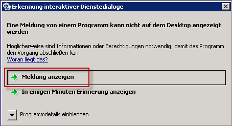 Werden die interaktiven Dienste in der Taskleiste nicht angezeigt, kann der Dienst "Erkennung interaktiver Dienste" beendet und wieder gestartet werden.
