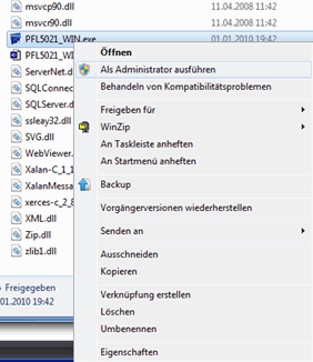 Rechtsklick auf die Server-Ausführungsdatei von bossERP (hier als Beispiel bossSalary, Version 5021):