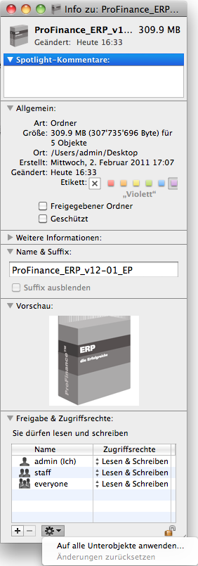 Applications oder an einem andern gewünschten Ort oder auf dem Schreibtisch (um ihn später an einen andern Ort zu verschieben)) ein Ordner z.B. mit dem Namen "bossERPr_ERP_v12-01_EP" anzulegen.