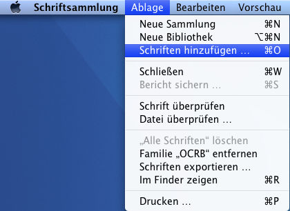 - Wählen Sie den Menüpunkt Ablage - Schriften hinzufügen