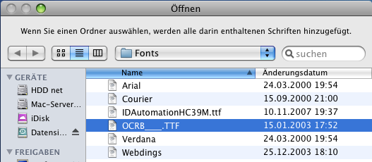 - und wählen Sie z.B. für die OCRB-Schrift die von bossinfo.com gelieferte Schriftart OCRB___.Tiff