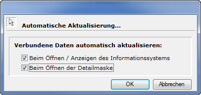 Sind beide Checkboxen gestellt, erfolgt überall beim Öffnen eine Aktualisierung.