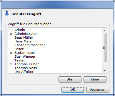 Mit CTRL+Klick auf den Button Dokumente können die individuellen Benutzerzugriffe eingestellt werden: