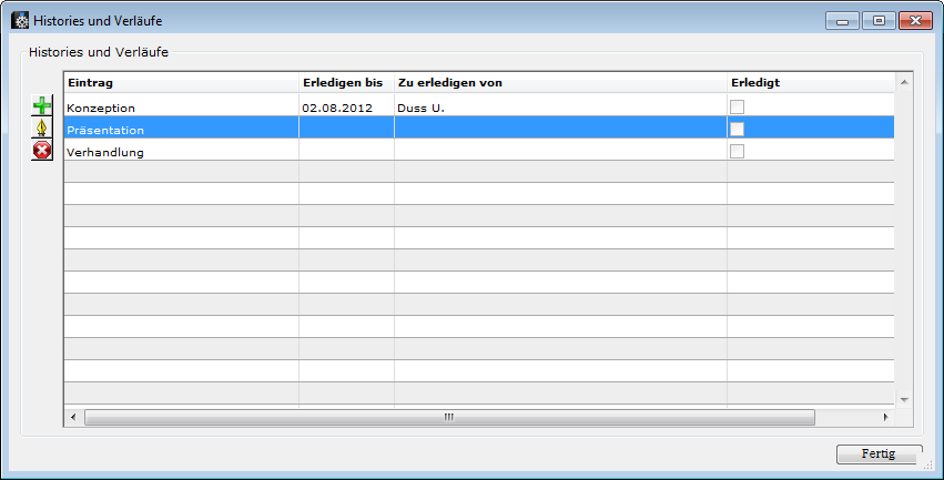 | Checkbox Erledigt | gestellt, falls Pendenz erledigt ist |