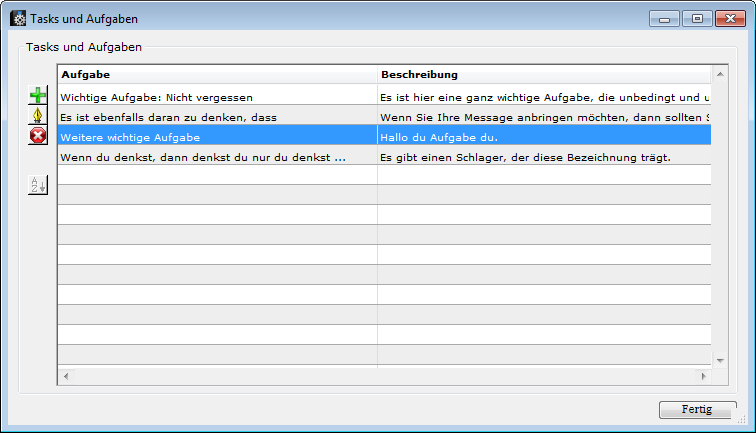 - Sortieren: durch Ziehen der Zeile an die gewünschte Position
