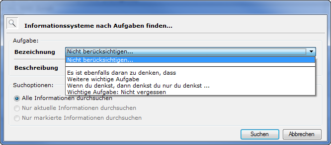 Mit dieser Suche kann man nach Bezeichnungen oder nach einer Aufgabenbeschreibung suchen: