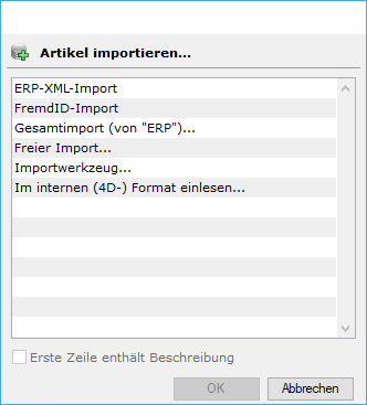 Übersicht Artikel-Importe + -exporte Importe Exporte Anbindung CAD Import von CAD-Artikeln Import von CAD-Stücklisten (Produktionspläne)