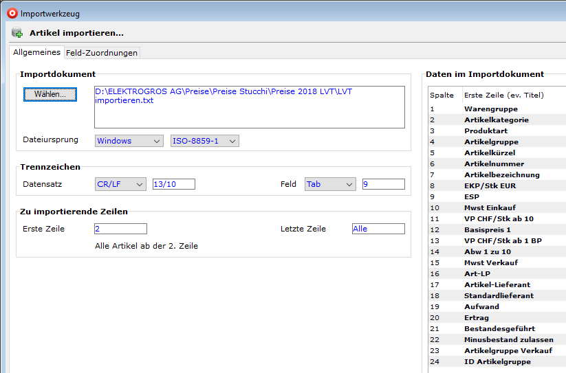 Artikel-Import mit Importwerkzeug