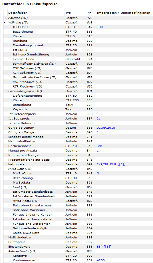 Import Einkaufspreise