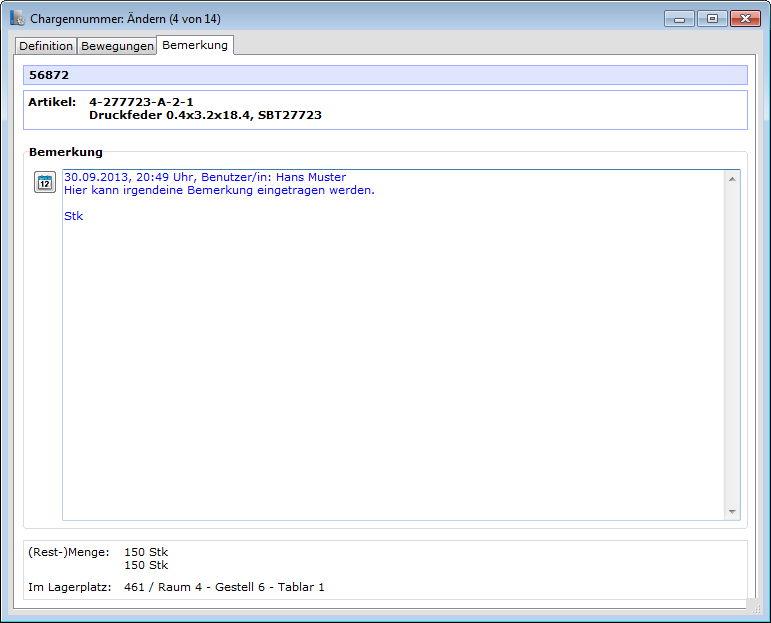LLN/CHN Bemerkung Siehe die in LLN/CHN Lagerlauf- bzw. Chargennummer Definition eingangs erwähnten Informationen.
