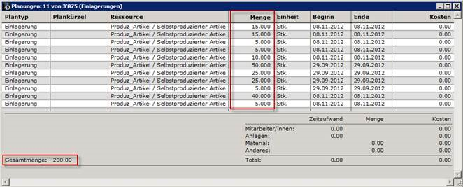 Mittels Menüpunkt Planungen - Verknüpfungen - Einlagerungen werden die - sonst versteckten - Einlagerungsdaten angezeigt: