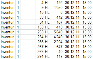 | Spalte 7 | 30.12.11 | Datum der Inventur. Wird in das Lagerjournal übernommen. |