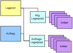 Auftragsbezogene Lagerplätze verhalten sich grundsätzlich gleich wie allgemeine Lagerplätze. Sie verfügen aber zusätzlich über eine Beziehung zu einem Auftragsdossier.