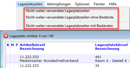 Hier gibt es möglicherweise Lagerplatzzeilen, die es nicht mehr braucht, z.B. 234 oder Z1, weil sie keine Bestände mehr haben und nicht mehr benötigt werden.