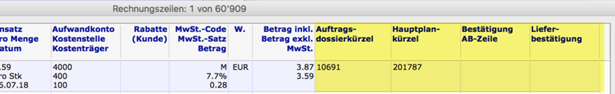 Die erstellten Bestellvorschlagszeilen haben eine Verknüpfung zu den auslösenden Auftrags-bestätigungs- und Planungszeilen. Es ist somit nachvollziehbar, aus welcher Auftragsbestäti-gung und/oder Planung eine Zeile erzeugt wurde. Diese Verknüpfungen sind im Hintergrund in einer Tabelle abgelegt und können über Verknüpfungen aufgerufen werden. Es empfiehlt sich, die Standardspalten "Auftragdossierkürzel", "Hauptplanung", "Bestätigung AB-Zeile", "Lieferbestätigung" sowie das Feld "effektiv benötigte Menge" als Spalte im Output anzuzeigen und an den Beginn zu verschieben (benutzerspezifische Einstellung):