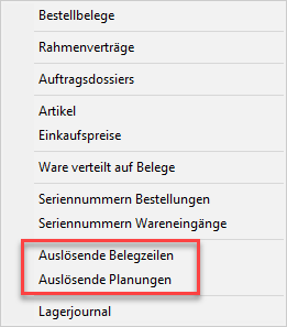 Verknüpfung ab Bestellbelegzeile auf auslösende AB-Belegzeilen bzw. Planungen