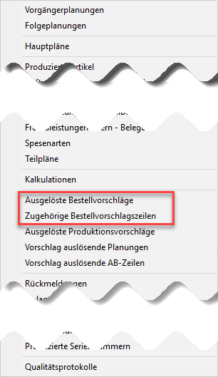 Verknüpfung ab Planung auf ausgelöste Bestellvorschläge bzw. zugehörige Bestellvorschlagszeilen