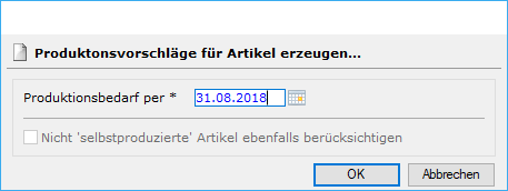 - Gibt es zu dem Artikel einen unverarbeiteten Produktionsvorschlag, so wird dieser angepasst bzw. erhöht und nicht ein neuer Produktionsvorschlag erstellt.