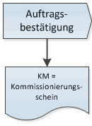 - Der **Kommissionierschein (KM)**kann entweder aus der Belegübersicht oder direkt aus der Input-Form, d.h. auf der Basis der Auftragsbestätigung, gedruckt werden. Dieser Report beinhaltet folgende Informationen: