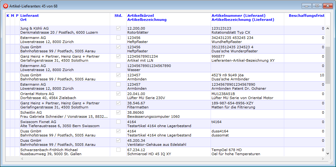 Siehe dazu: Adresse - Register Einkauf - Bereich Lieferant (Lieferant für Artikel). Das Fenster lässt sich vertikal vergrössern.