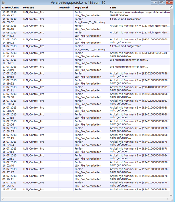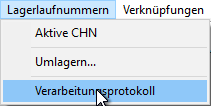 Danach Menüpunkt Lagerlaufnummern - Verarbeitungsprotokoll: