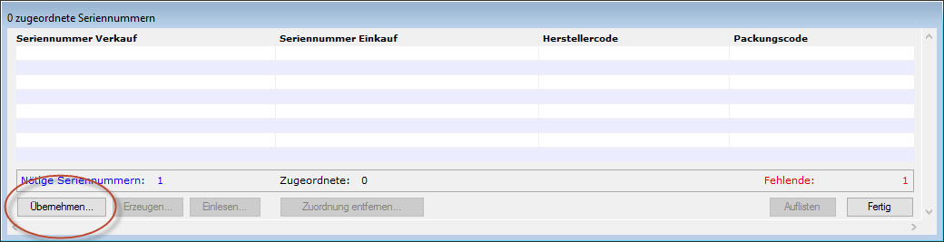 Übernahme bzw. Weiterreichen von Seriennummern