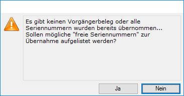Sofern die SN aus dem Vorgängerbeleg nicht übernommen wird, kann man wie folgt vorgehen: