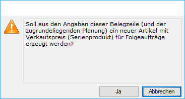 Aus einem Artikel kann bekanntlich ein Plan angelegt werden. Damit ist es möglich, dass künftige analoge Folgeaufträge aus einem Artikel heraus produziert werden können, d.h. man kann aus einem Artikel Folgeaufträge "irgendwie" fixieren.