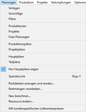 Menüpunkt Planungen
