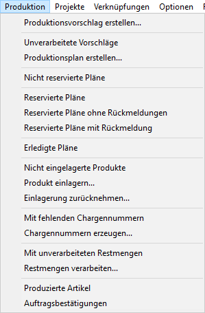 Das Gleiche ist auch unter dem Menüpunkt Produktion - ... zu finden: