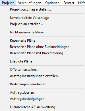 Damit können unter dem Menüpunkt Planungen - ... folgende Suchen vorgenommen werden