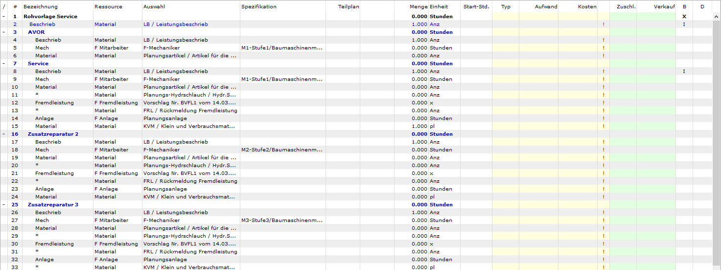 Sie sollen so aufgebaut werden, dass sie die wesentlichen und planerisch voraussehbaren Arbeiten und Ersatzteile enthalten. Die Planvorlagen sehen folgendes vor: