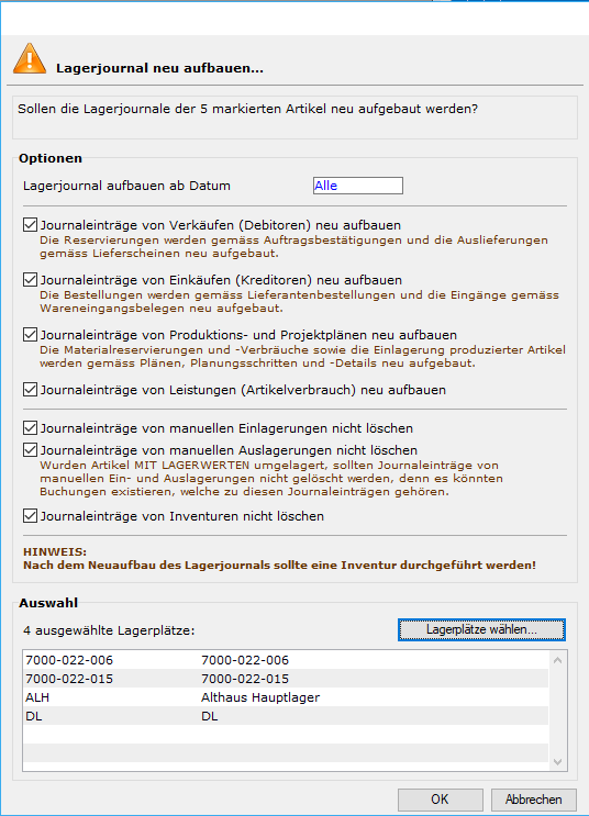 Lagerjournal neu aufbauen