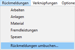 - Mit Menüpunkt Rückmeldungen - Rückmeldungen umbuchen