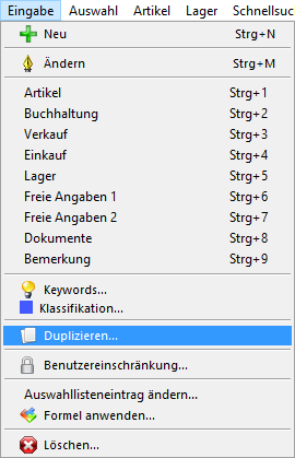 Durch Markieren eines oder mehrerer Artikel können sie dupliziert bzw. kopiert werden: