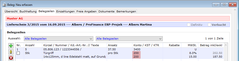 - Markieren der zu ändernden Belegzeilen