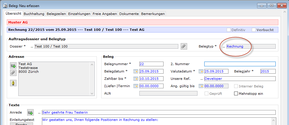 - Die neuen Belegzeilen (der Kundenrechnung) werden immer als letzte Zeilen angehängt. Man kann sie umsortieren, falls das nötig sein sollte.