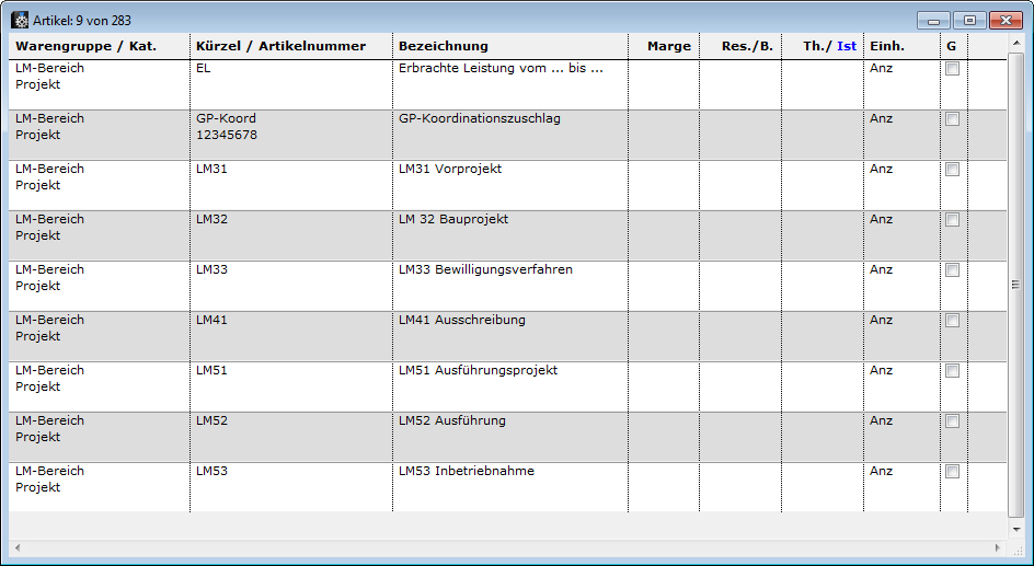 Es müssen jene (nicht bestandesgeführten) Artikel erfasst sein, die es für die Fakturierung braucht. Beachten Sie die Einstellungen für: