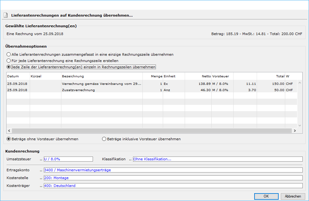 Belegzeilen aus Lieferantenrechnung übernehmen