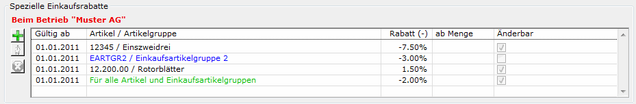 Artikelgruppen-Rabatte für den entsprechenden Kunden bzw. Kundengruppe |