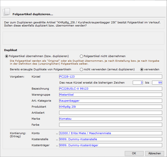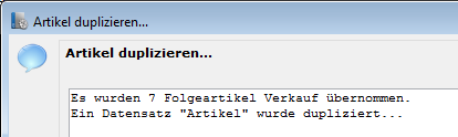 Es werden im gewählten Beispiel 7 Folgeartikel mitdupliziert: