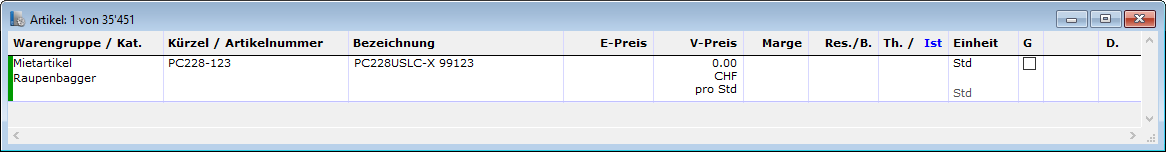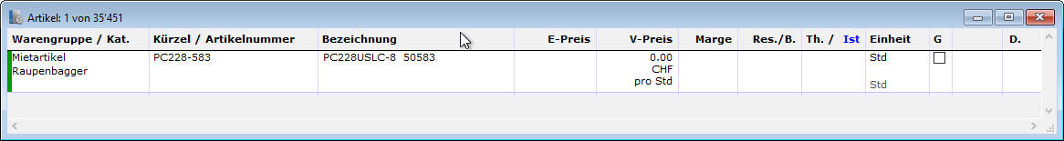 - Stellt man den Radiobutton auf "übernehmen", werden alle Felder standardmässig mit den Daten des markierten Artikels gefüllt.