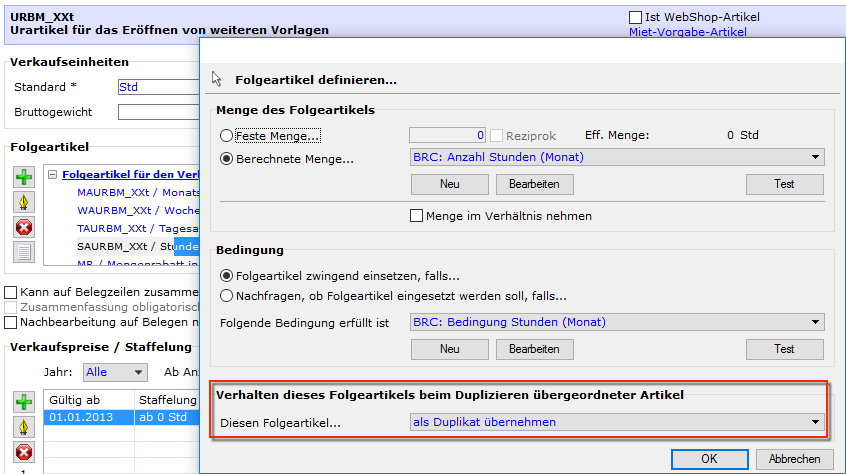Diese Artikel sind gesperrt. Der Unterschied zu den "normalen" Hauptartikeln mit ihren Folgeartikeln besteht lediglich darin, dass die Bedingung auf "als Duplikat übernehmen" bei den Folgeartikeln eingesetzt ist: