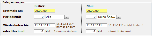 Die bereits erzeugten Belege werden auf diese Art weder gelöscht noch automatisch geändert.