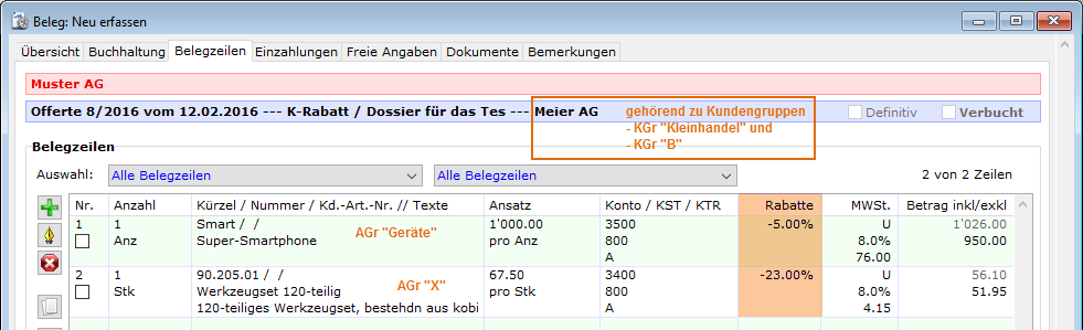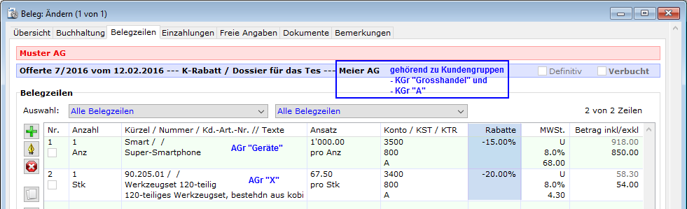 Belegverarbeitung "Blauer" Fall (vor dem Wechsel von KGr): "Rötlicher" Fall (nach dem Wechsel der KGr):