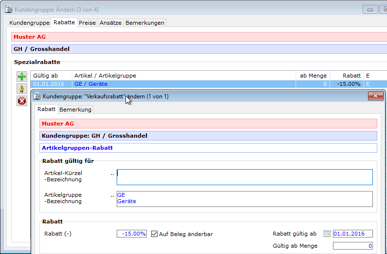 - In den KGr müssen nun die AGr-Rabatte hinterlegt werden: