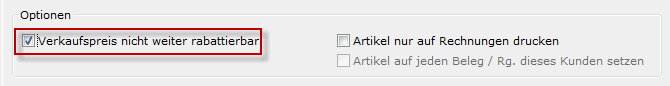 Es geht darum, dass bossERP keine Rabatte mehr zulässt, wenn in der Belegzeile genau dieser Verkaufspreis verwendet wird, also nicht, wenn dieser oder jener Artikel bzw. Artikelgruppe betroffen ist.