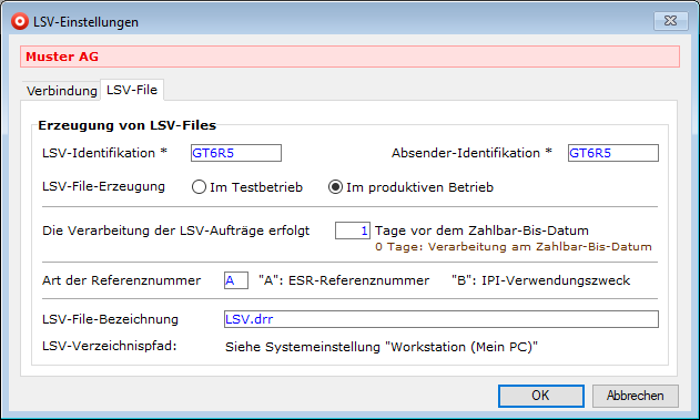 Der Verzeichnispfad zur Ablage der LSV-Files muss in der Systemeinstellung „Workstation (Mein PC)“ angegeben werden. Siehe dazu Workstation - Register ZA-Verzeichnisse.