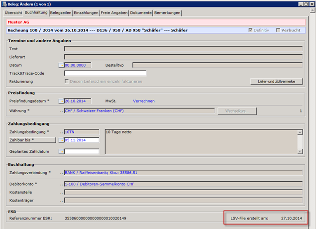 Diese eigene(n) Zahlungsverbindung(en) ist/sind diejenigen, welche im Beleg im zweiten Register gesetzt wird. In diesem zweiten Register wird auch das LSV-Erstellungsdatum vermerkt:
