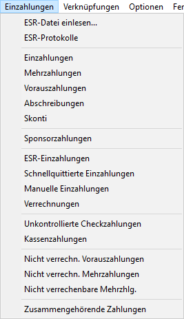 ESR-Protokoll Suchfunktionen für folgende Einzahlungstypen
